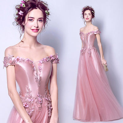 凸显精致锁骨线条 雅致豆沙粉色新娘婚纱礼服敬酒服伴娘服9712